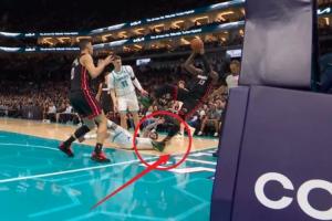 GIF-這動(dòng)作不好!三球用手扒阿德巴約腳后跟致其倒地受傷,已回更衣室!