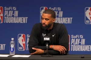 李:“是的。我認為在防守端,他承擔了防守對方幾乎所有球員的任務。我喜歡他挺身而出的方式,他愿意防守任何人。如果對手狀態(tài)火熱,他準備好了去應對。關于他最初的身體接觸,我認為那展現(xiàn)了極好的身體對抗能力,他完全貫徹了不讓對手輕易進入禁區(qū)的防守心態(tài)。我們知道防守這些家伙有多難,一旦他們突入禁區(qū),他們要么自己得分效率很高,要么分球給外線投三分,或者利用撲防機會再次突破你。所以我喜歡他在防守端給我們帶來的東西,他在防守策略中的溝通,然后退回防守并幫助我們搶籃板。還有在比賽早些時候,他在進攻端展現(xiàn)的身體對抗,比如他的一些掩護,理解錯位在哪里并在進攻時間早期加以利用,這真的幫助了我們?!?/p>
