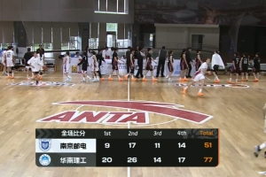 末節(jié)大比分領(lǐng)先之后華南理工主做防守,雖然沒能像前三節(jié)那樣壓制對手但場面部落下風(fēng),優(yōu)勢一直維持在20分以上不給對手任何機會。最終,華南理工77-51大勝南京郵電大學(xué)拿下比賽。