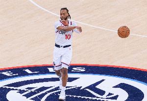 上半場比賽,加蘭首發(fā)出戰(zhàn)18分28秒,投籃8中5,三分2中1,得到11分3籃板5助攻。