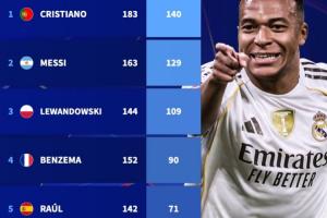 體育資訊04月16日訊 歐冠1/4決賽次回合,皇馬3-4總比分4-6不敵拜仁被淘汰,姆巴佩打入個人本賽季歐冠第15球,并達(dá)成歐冠70球里程碑,排名歷史第6,距離第5的勞爾僅差一球。