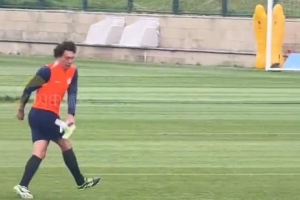 據“閃電新聞”報道,在今日泰山隊賽前訓練中發(fā)生了有趣一幕,在傳遞球訓練時王大雷突然“前插”,從隊友陳澤仕腳下搶下皮球后完成一腳射門。