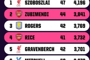 體育資訊4月17日訊 OPTA對(duì)英超球員本賽季各項(xiàng)賽事出場(chǎng)時(shí)間進(jìn)行了統(tǒng)計(jì),利物浦的索博斯洛伊以4196分鐘居首,阿森納兩將蘇維門迪和賴斯位居第2和第4位,兩人出場(chǎng)時(shí)間分別為3841分鐘和3732分鐘。