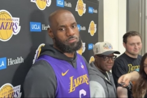 體育資訊4月17日訊 今日,湖人球星詹姆斯在訓練后接受了采訪。
