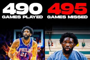 前年簽3年1.88億!恩比德生涯至今出戰(zhàn)490場常規(guī)賽 缺席495場比賽