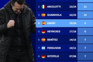 體育資訊4月17日訊 歐聯(lián)杯1/4決賽,維拉兩回合雙殺博洛尼亞闖進(jìn)半決賽。對于維拉主帥埃梅里而言,他實現(xiàn)了一項了不起的成就。進(jìn)入新世紀(jì),埃梅里共9次闖進(jìn)歐戰(zhàn)半決賽,僅次于穆里尼奧、安切洛蒂以及瓜迪奧拉3位名帥。
