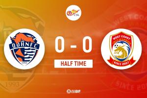 半場結(jié)束,青島海牛0-0青島西海岸。