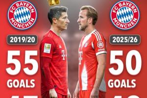 本賽季凱恩代表拜仁出戰(zhàn)42場比賽,已經(jīng)貢獻(xiàn)50粒進(jìn)球和6次助攻,距離萊萬在拜仁的最佳賽季2019/20賽季創(chuàng)下的47場55球還有5球。