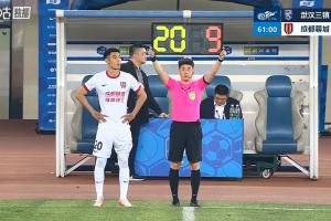 比賽第61分鐘,蓉城換人調(diào)整,王子銘換下費(fèi)利佩。