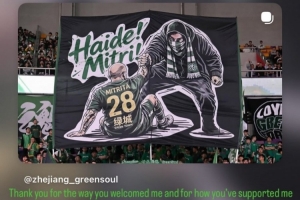 體育資訊4月18日訊 中超第6輪,浙江隊(duì)主場0-0戰(zhàn)平北京國安,本場比賽前浙江隊(duì)球迷打出TIFO,聲援被停賽的外援米特里策。