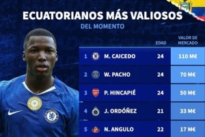 體育資訊4月18日訊 切爾西已經(jīng)官宣同厄瓜多爾后腰凱塞多續(xù)約,《轉(zhuǎn)會市場》也統(tǒng)計了厄瓜多爾球員身價情況,共計6人身價超1000萬歐元。