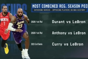 1、2026年首輪 杜蘭特 vs 詹姆斯 合計(jì)76037分