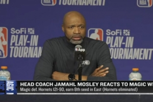 體育資訊4月18日訊 NBA附加賽,魔術(shù)121-90戰(zhàn)勝黃蜂。賽后,魔術(shù)主教練莫斯利接受了采訪,以下為全文。