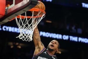體育資訊4月18日訊 NBA附加賽,太陽(yáng)上半場(chǎng)以50-45領(lǐng)先勇士。