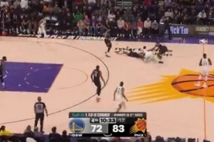 GIF-古德溫倒地逼搶庫里爭球 庫里跳贏