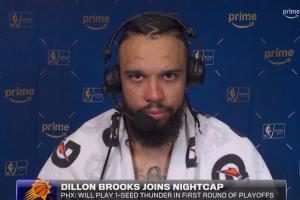 賽后,狄龍接受采訪時(shí)談到了對(duì)陣?yán)做男膽B(tài)。他說(shuō)道:“相信我們每天都在做的事,努力打球,珍惜每一個(gè)回合,對(duì)陣NBA里的任何人,我都相信我的隊(duì)友。我們會(huì)上場(chǎng)‘偷走’G1的勝利。(We're going to go out there and steal Game 1.)”