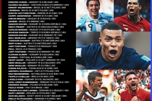 體育資訊4月18日訊 世界杯開幕倒計時54天,世界杯官方社媒盤點了賽事歷史上的54次帽子戲法。