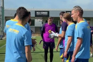 巴薩門將什琴斯尼迎來36歲生日,今日訓(xùn)練之前,隊(duì)友們列成兩排,以拍打儀式為他慶生。