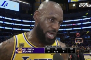 體育資訊4月19日訊 今日,湖人在季后賽首輪G1中107-98主場(chǎng)擊敗火箭,系列賽1-0領(lǐng)先。賽后,湖人球星詹姆斯接受了采訪。