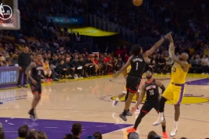 GIF-詹姆斯單挑阿門 翻身后仰還能中