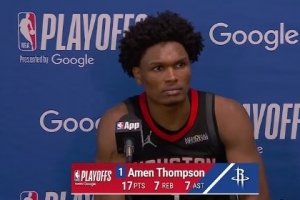 體育資訊4月19日訊 西部季后賽首輪G1,火箭客場98-107不敵湖人,大比分0-1落后,賽后阿門·湯普森接受采訪,以下為采訪全文。