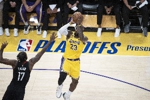 我們本以為詹姆斯會(huì)用過去的方式來做到這一點(diǎn),覺得他擊退死神的方法就是讓時(shí)光倒流。在無關(guān)痛癢的常規(guī)賽收官前的最后三場比賽中,詹姆斯場均得到28分,外加接近13次助攻和8個(gè)籃板。他場均出手18.3次,僅略低于他8年湖人生涯和4年熱火生涯的季后賽場均出手?jǐn)?shù)。