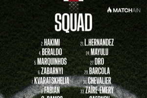 體育資訊4月19日訊 北京時(shí)間明天凌晨,巴黎將在法甲第30輪比賽中主場對(duì)陣?yán)锇?,巴黎公布了此役的球員名單,法比安回歸,努諾·門德斯缺席。