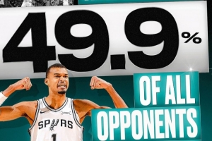 體育資訊4月20日訊 NBA官方發(fā)文談到文班的封蓋表現(xiàn),其中一項數(shù)據(jù)寫到和文班交手的球員有近半數(shù)都被他封蓋過。