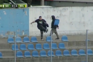新戈里察目前在斯洛文尼亞第二級(jí)別聯(lián)賽中排名墊底,距離安全區(qū)有九分之差。當(dāng)ND貝爾廷齊的多米尼克·德爾克打入第三球時(shí),一名新戈里察球迷一腳將看臺(tái)座椅踢飛到了空中。