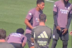體育資訊04月20日訊 今日皇馬在訓(xùn)練基地訓(xùn)練,備戰(zhàn)對(duì)陣阿拉維斯的比賽。姆巴佩在訓(xùn)練中誤將球踢中維尼修斯的下體,隨后上前表達(dá)歉意。
