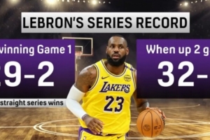 當(dāng)領(lǐng)先2場時(shí)(包括2-0和3-1),系列賽32勝0負(fù)。