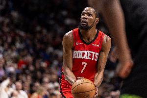 上半場,火箭球星杜蘭特表現(xiàn)不錯,場上打得挺全能,打了18分鐘,投籃9中5,三分球2中0,罰球2中2,拿到12分4籃板3助攻1蓋帽。