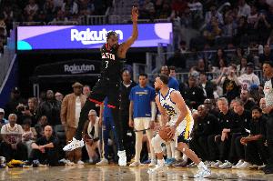 杜蘭特17中10砍下31分8板8助3帽,庫里復(fù)出首秀21中11貢獻(xiàn)29分2板4助1斷。