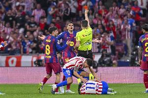 體育資訊4月7日訊 西甲第30輪比賽,巴薩在客場以2-1的比分戰(zhàn)勝馬競。本場比賽,赫拉德·馬丁解圍時踢到阿爾馬達(dá)腳踝,主裁判第一時間出示了紅牌,在VAR介入后,他改判為黃牌,這一判罰引進(jìn)了馬競方面的巨大不滿。