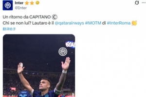 他也在今日被俱樂(lè)部官方評(píng)選為本場(chǎng)比賽的隊(duì)內(nèi)MVP。國(guó)米官方也點(diǎn)評(píng)道:“隊(duì)長(zhǎng)回歸!除了他還能是誰(shuí)呢?勞塔羅當(dāng)選國(guó)米vs羅馬的隊(duì)內(nèi)MVP。”