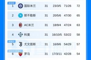 體育資訊4月7日訊 意甲第31輪,米蘭0-1客負(fù)那不勒斯遭排名反超、尤文2-0輕取熱那亞距歐冠區(qū)僅1分。最新積分榜↓