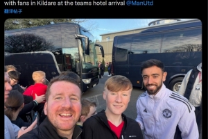 B費(fèi)在曼聯(lián)下榻的酒店外花了一個(gè)小時(shí)為球迷簽名和合影,一位球迷在社交媒體上曬出與B費(fèi)的合照,配文:“世界最佳球員在球隊(duì)下榻的酒店花了一個(gè)小時(shí)為球迷簽名合影?!?/p>