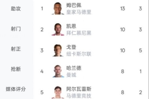 值得注意的是,數(shù)據(jù)統(tǒng)計顯示,本賽季歐冠到目前為止,射手榜和助攻榜前兩名都是這兩隊的球員(紐卡的安東尼·戈登與凱恩并列射手榜第二)