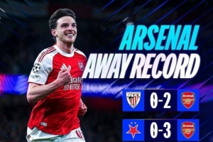 數(shù)據(jù)統(tǒng)計顯示,阿森納本賽季歐冠客場4勝1平,打進12球僅丟2球: