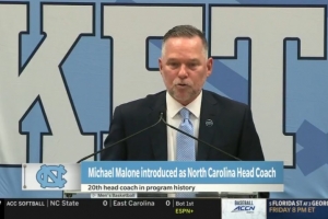 體育資訊4月8日訊 今天,邁克·馬龍作為新任主帥參加了北卡大學(xué)的新聞發(fā)布會(huì)。