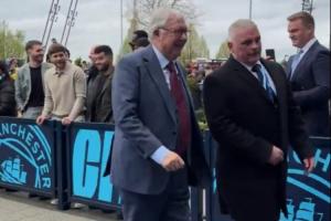 體育資訊04月04日訊 北京時(shí)間19點(diǎn)45分,足總杯1/4決賽,曼城vs利物浦,據(jù)TNT曬出現(xiàn)場(chǎng)視頻,84歲曼聯(lián)傳奇主帥弗格森來(lái)到阿提哈德球場(chǎng)現(xiàn)場(chǎng)觀戰(zhàn)。