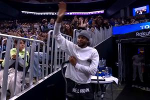 GIF-穆迪來(lái)到勇士主場(chǎng) 接受了全場(chǎng)球迷起立送上的久久的歡呼和掌聲 有些淚目