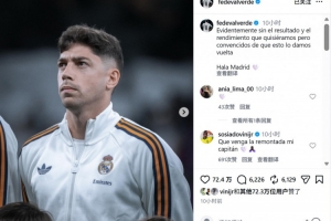 本場(chǎng)比賽巴爾韋德首發(fā)出戰(zhàn),賽后他也在個(gè)人社媒發(fā)文鼓勵(lì)球隊(duì)寫道:“顯然未能取得我們所期望的成績與表現(xiàn),但我們堅(jiān)信定能扭轉(zhuǎn)局面。Hala Madrid ??”