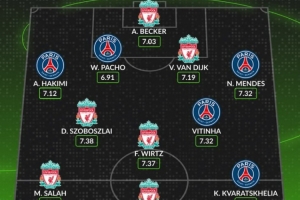 中場(chǎng):索博斯洛伊(利物浦)、維爾茨(利物浦)、維蒂尼亞(巴黎)