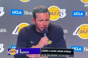 體育資訊4月10日訊 湖人客場挑戰(zhàn)勇士,賽前主教練雷迪克接受采訪,談到球隊近期的三連敗。