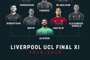 18/19賽季歐冠決賽利物浦首發(fā)陣容: