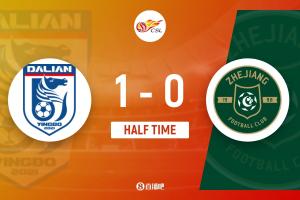 半場(chǎng)戰(zhàn)罷,大連英博暫1-0浙江。
