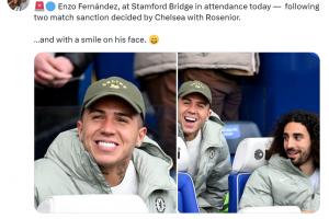 體育資訊04月05日訊 恩佐因?yàn)榇饲把哉?,被切爾西?nèi)部處罰禁賽兩場(chǎng)。今天恩佐現(xiàn)身斯坦福橋觀戰(zhàn),看起來(lái)心情不錯(cuò)。羅馬諾發(fā)文報(bào)道。
