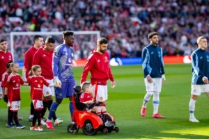 還有一位名叫博比·摩爾的男孩,來(lái)自貝爾法斯特,患有脊髓性肌萎縮癥。他曾給曼聯(lián)隊(duì)長(zhǎng)寫信,B費(fèi)把博比帶到卡靈頓訓(xùn)練基地,并游說(shuō)讓他成為曼聯(lián)首位坐輪椅的球童。去年四月曼徹斯特德比,他們一起攜手入場(chǎng)。