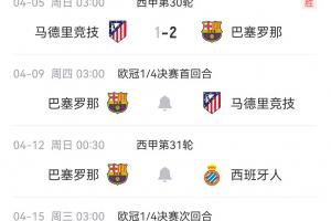 體育資訊04月05日訊 本輪西甲,巴薩2-1逆轉(zhuǎn)馬競(jìng)。